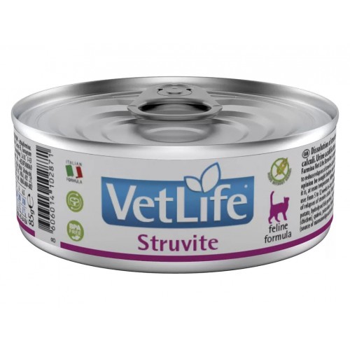 Полнорационный диетический влажный корм для кошек для растворения струвитных камней, при заболеваниях нижних мочевых путей и снижения рецидивов струвитного уролитиаза.