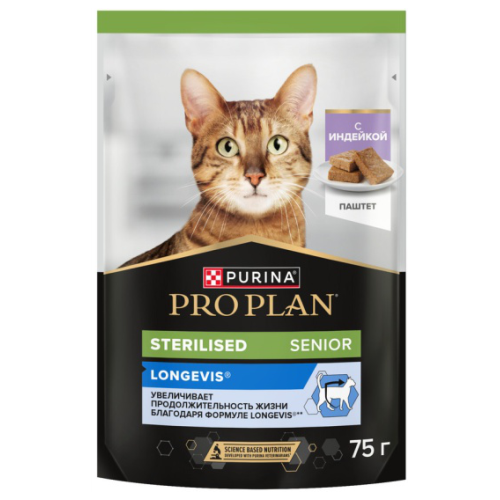 Pro Plan Adult 7+, пауч для кошек старше 7 лет индейка паштет 75 г