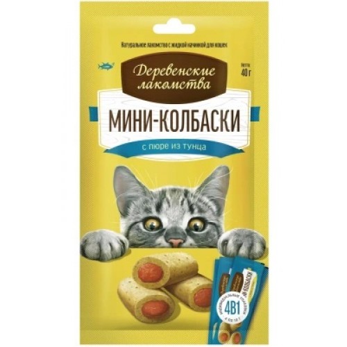 Лакомство д/кошек Деревенские лакомства мини-колбаски с пюре из тунца, 40 г