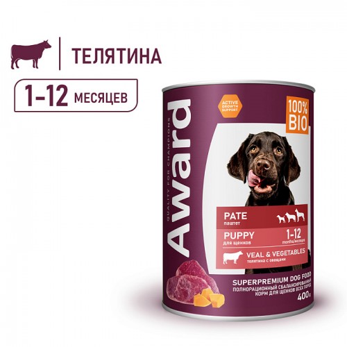 AWARD паштет из телятины с овощами для щенков от 1 мес., 400 г