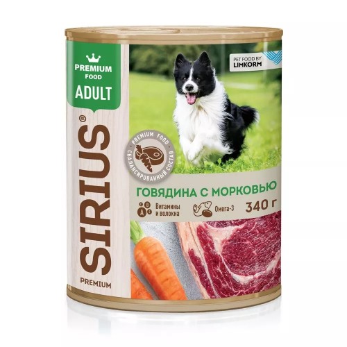 Мясо и мясные субпродукты (в том числе говядины не менее 4%), подсолнечное масло, злаки, пшеничная клетчатка, морковь, витаминно-минеральный комплекс, рыбий жир.