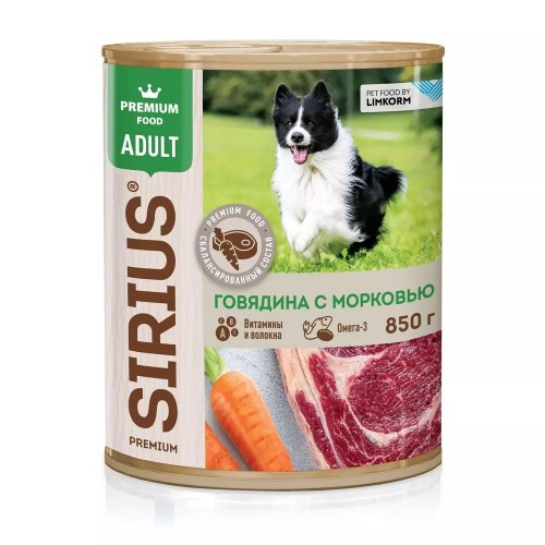 Sirius корм консервы для собак говядина морковь 850 г